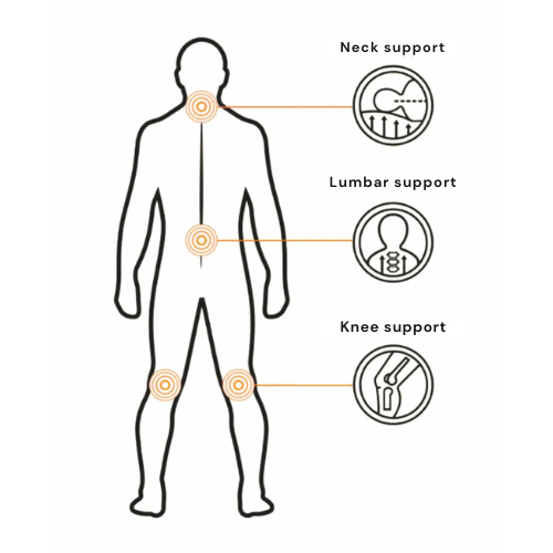 The pillow is suitable for people suffering from back, neck, and shoulder pain. It supports the head, neck, abdomen, hips, and knees. It relieves discomfort caused by arthritis, fibromyalgia, and herniated discs, and promotes blood circulation and flow.