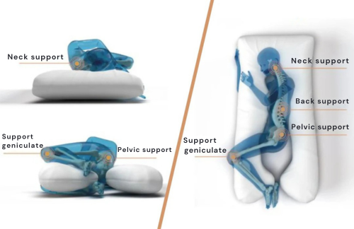 Designed to simultaneously support the head and back, Nexora reduces pressure on areas of support and friction.